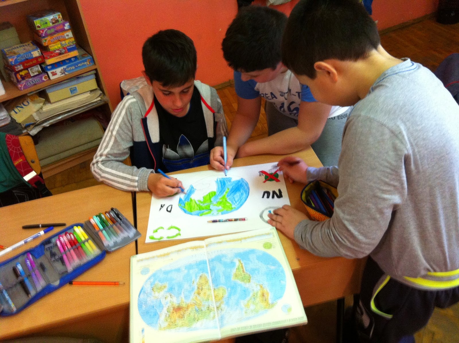 Azi elevii au realizat afişe despre protejarea mediului şi oprirea risipirii resurselor naturale, apoi au mărşăluit pe străzile din apropierea şcolii pentru sensibilizarea trecătorilor. Activitatea se află în calendarul Patrulei Eco, program naţional în care este cuprinsă şi clasa noastră.